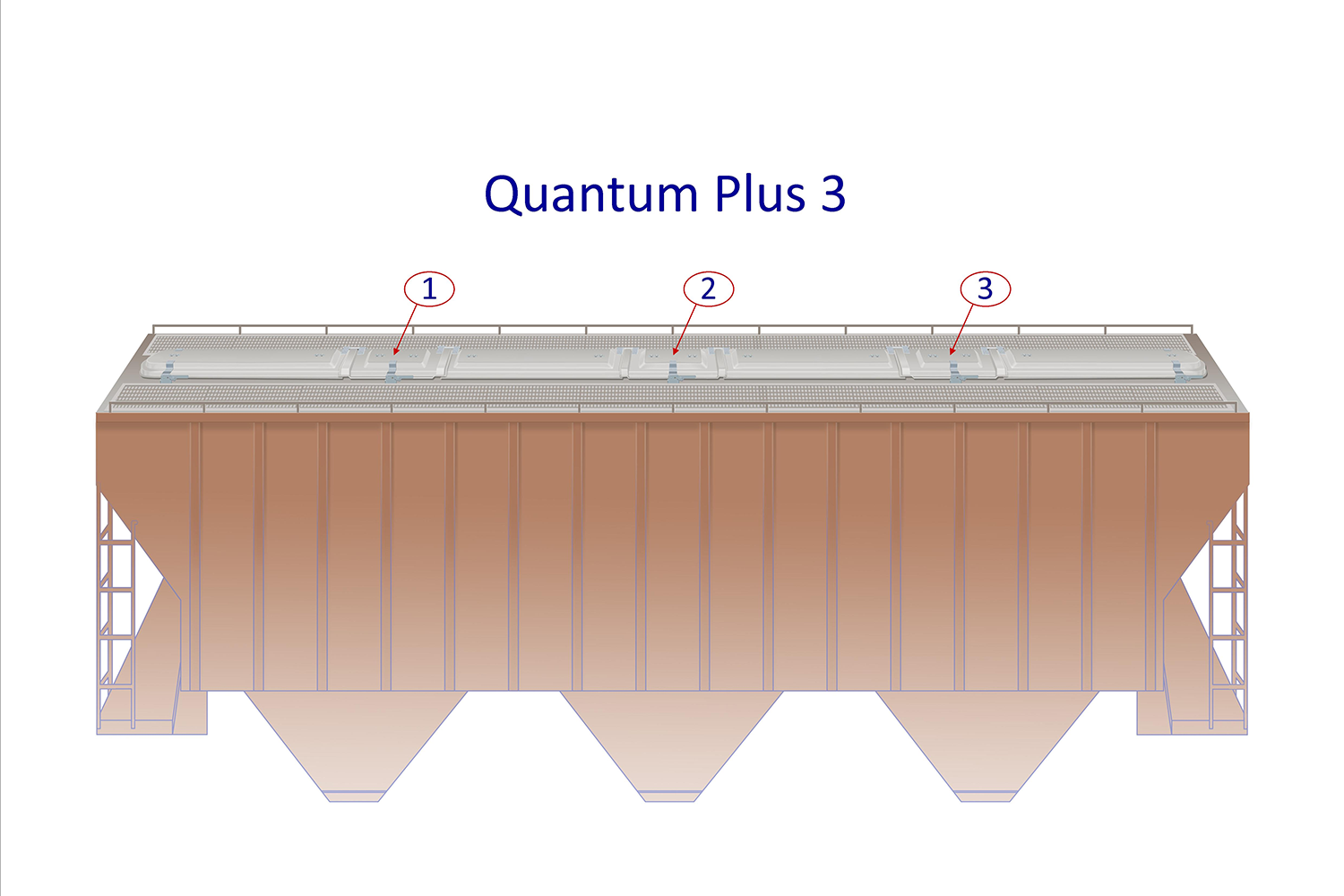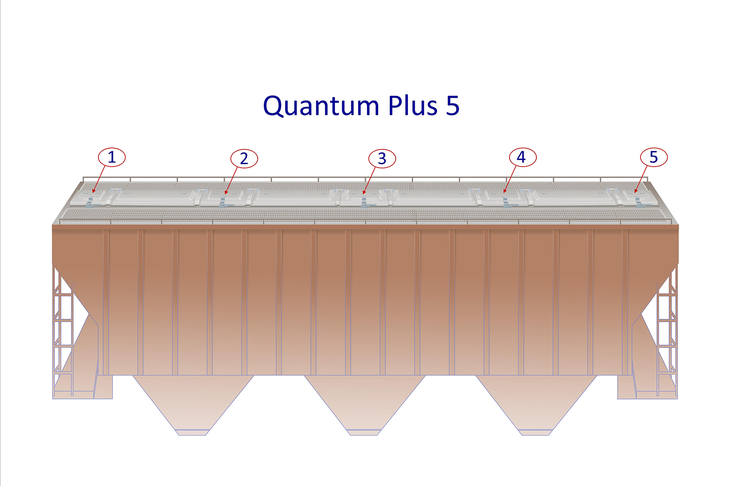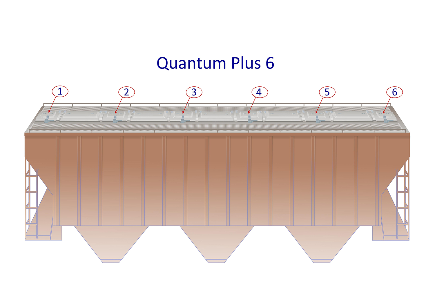 Our patented Quantum Plus system (+3, +5, +6) is the premier choice for trough hatch cover systems. The +3, +5, and +6 terminology references the number of small square shaped ports in the system. These ports work similar to a batten bar, but create a substantially better seal between intermediate covers and can act as loading or inspection ports. The length of these ports typically reduces the overall length of the intermediate covers making each cover considerably lighter and easier to operate.